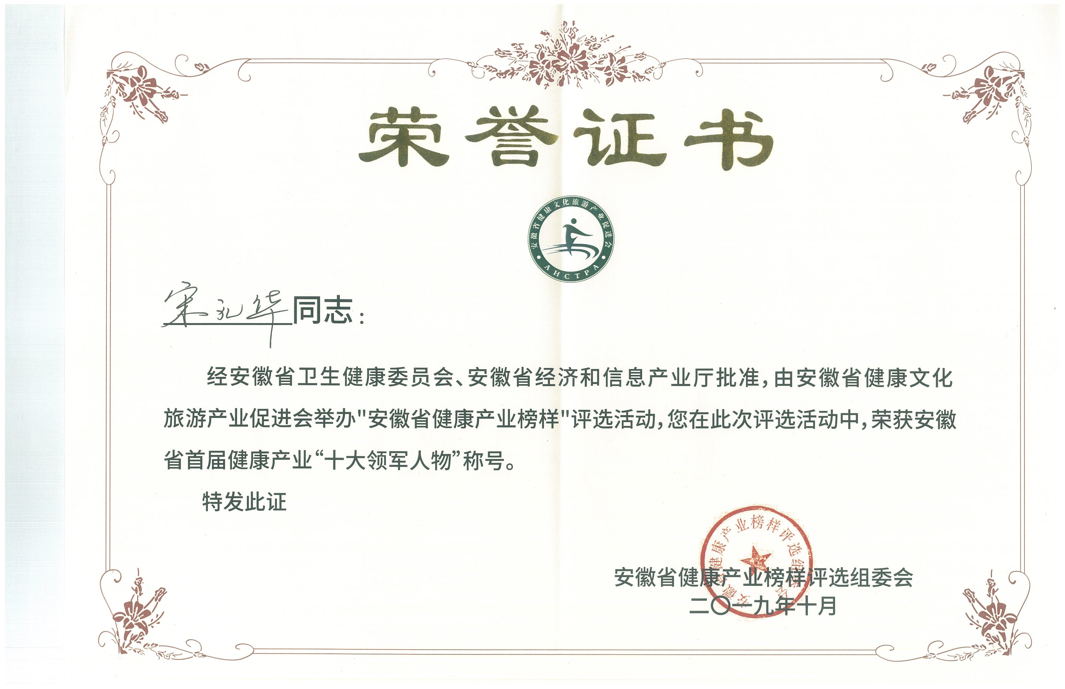 2019年10月15日,“平安養(yǎng)老杯”安徽省首屆健康產業(yè)榜樣頒獎盛典上,安科生物宋禮華董事長榮獲“安徽省健康產業(yè)榜樣評選十大領軍人物”稱號。
