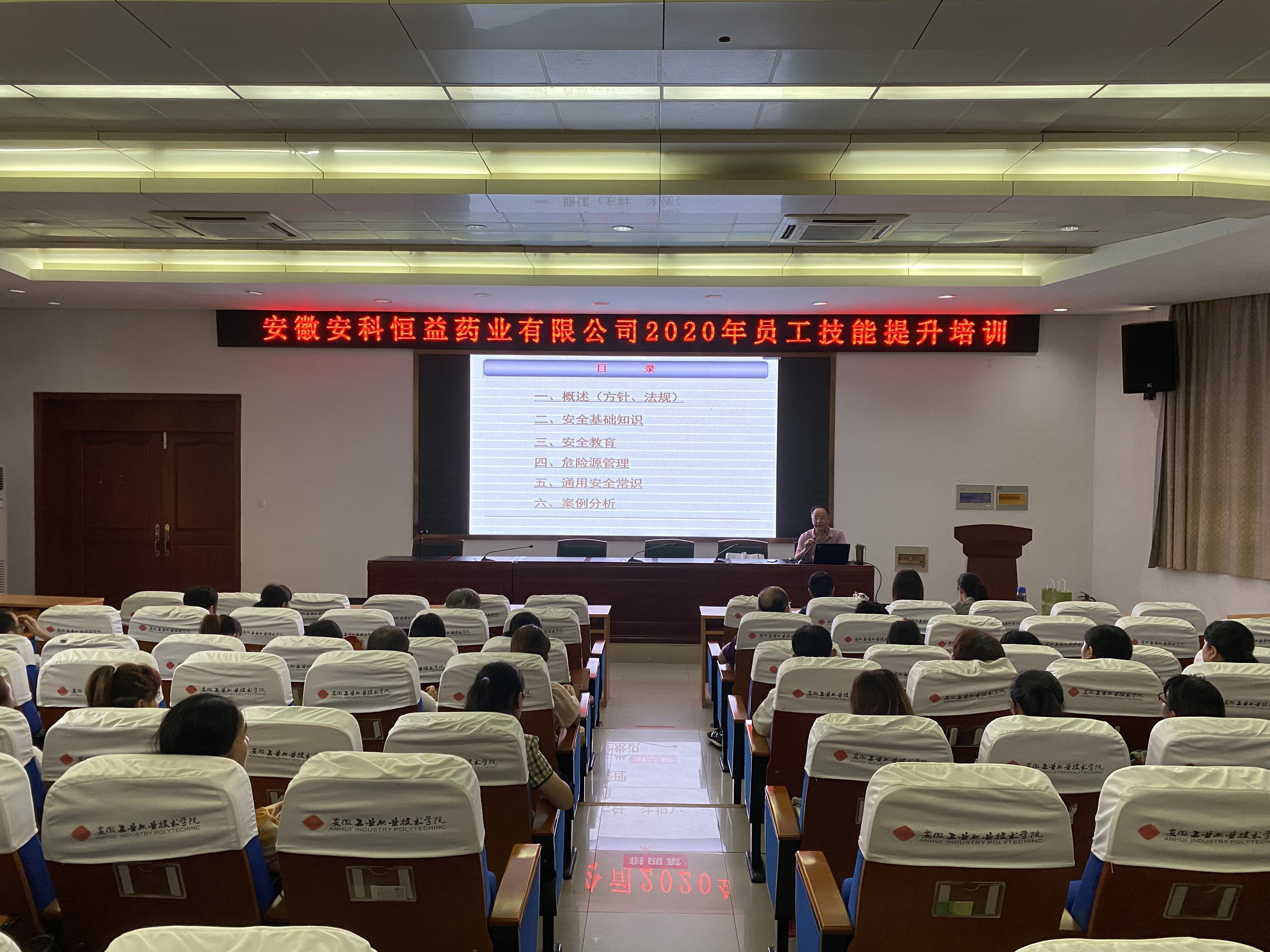 為進(jìn)一步提高員工的藥品專業(yè)理論知識,提升員工的法律意識、安全生產(chǎn)意識,2020年7月24日、25日,我公司聯(lián)合安徽工業(yè)職業(yè)技術(shù)學(xué)院開展了為期兩天的在崗員工崗位技能提升培訓(xùn)活動。