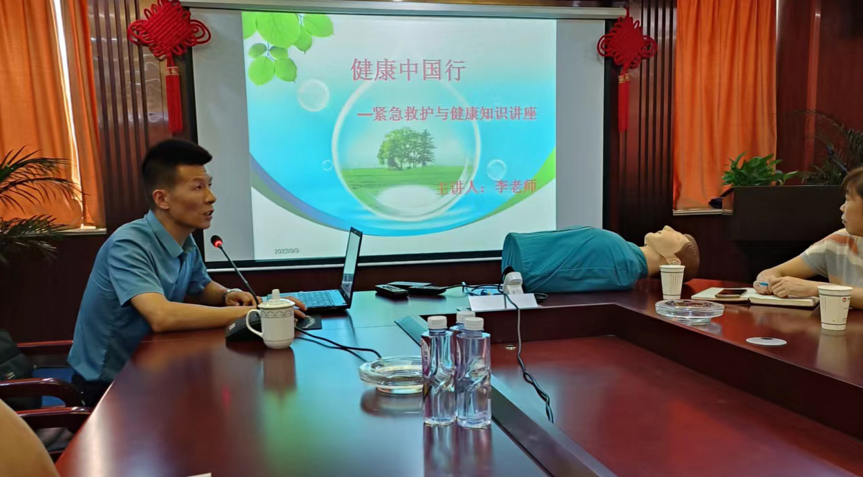 講座現(xiàn)場,授課老師用通俗易懂、幽默風(fēng)趣的語言,采取理論知識講授,特別是突發(fā)意外事件的現(xiàn)場處理,包括人工呼吸、心肺復(fù)蘇、止血包扎等急救常識進行現(xiàn)場演示以及實踐操作,讓員工們充分認識到了應(yīng)急救護黃金時間的重要性。講座中老師還就如何形成健康的生活方式,現(xiàn)代職業(yè)病的預(yù)防及改善、三高慢性疾病流行疾病預(yù)防治療、心理健康及中醫(yī)常見穴位養(yǎng)生知識等內(nèi)容對職工進行了詳細而系統(tǒng)的介紹和講解。同時希望職工們在日常身體保健中確保合理膳食、適量運動、戒煙限酒、心理平衡和定期體檢。